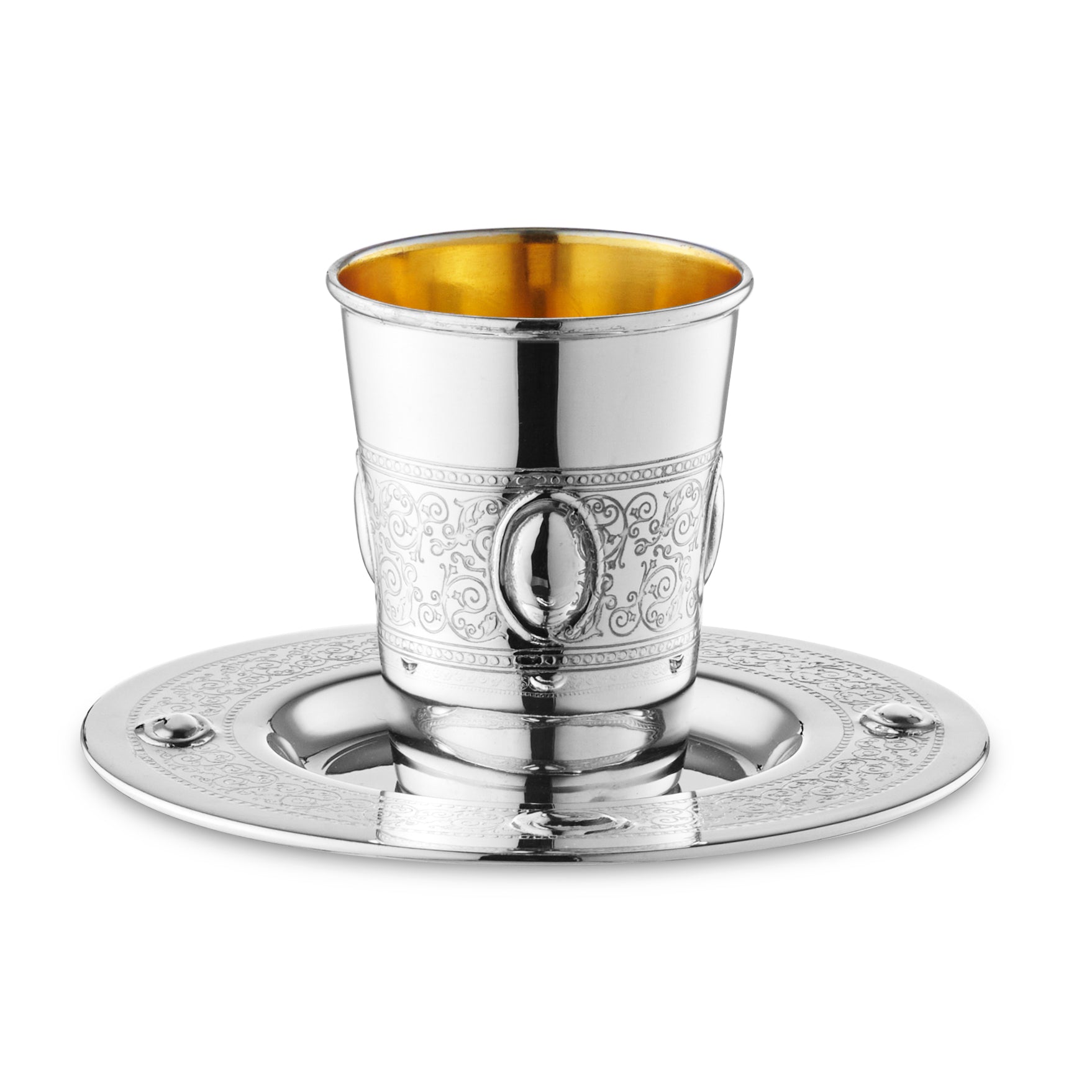 Kiddush Cup Set Eye Belt Design 925 Sterling Silver Coated 3" ( 140 ml 4.7 oz)