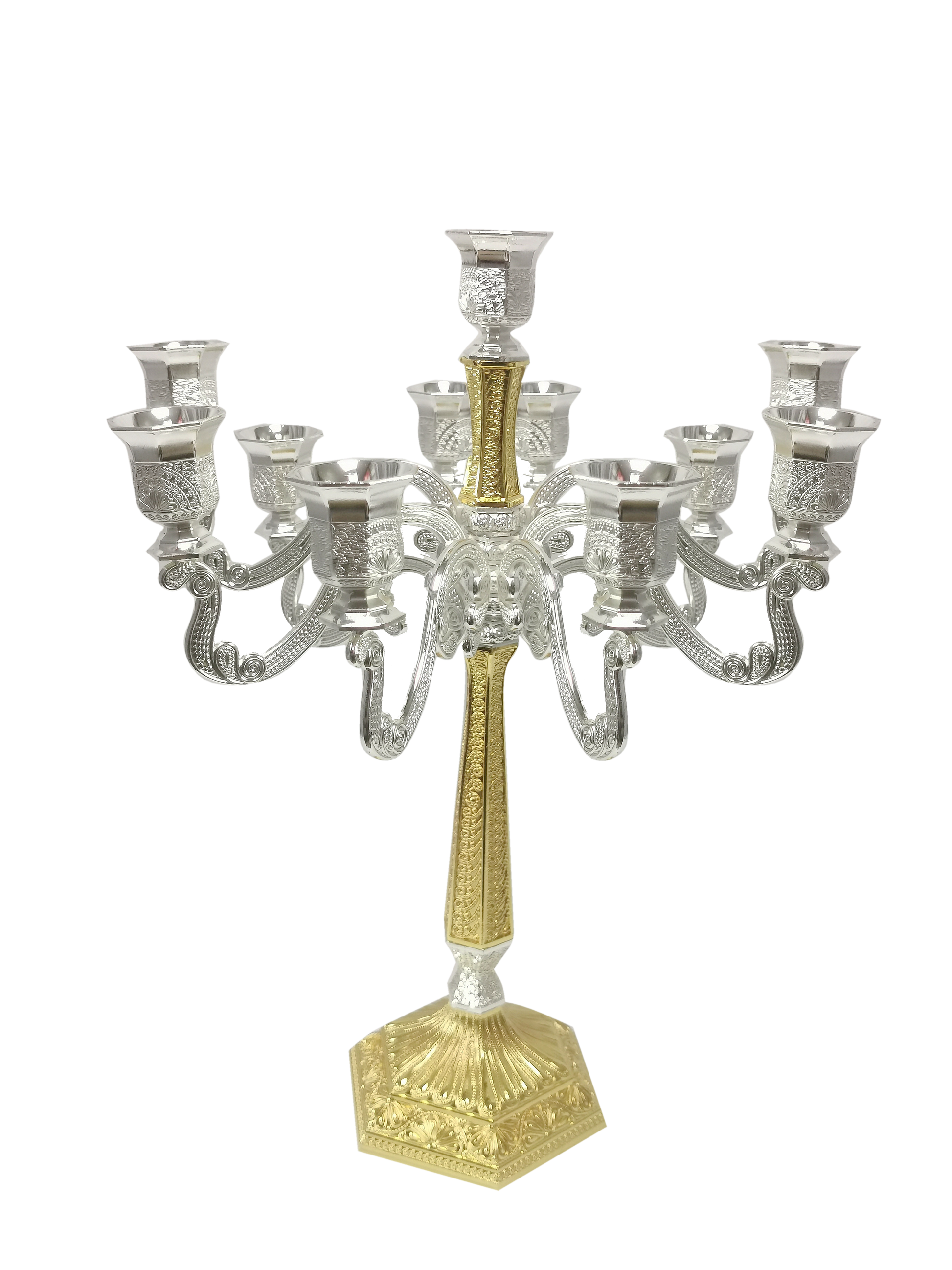 Silver & Gold Filigree Candelabra 11 Light 16" is a candlesticks item supplied by Nua.