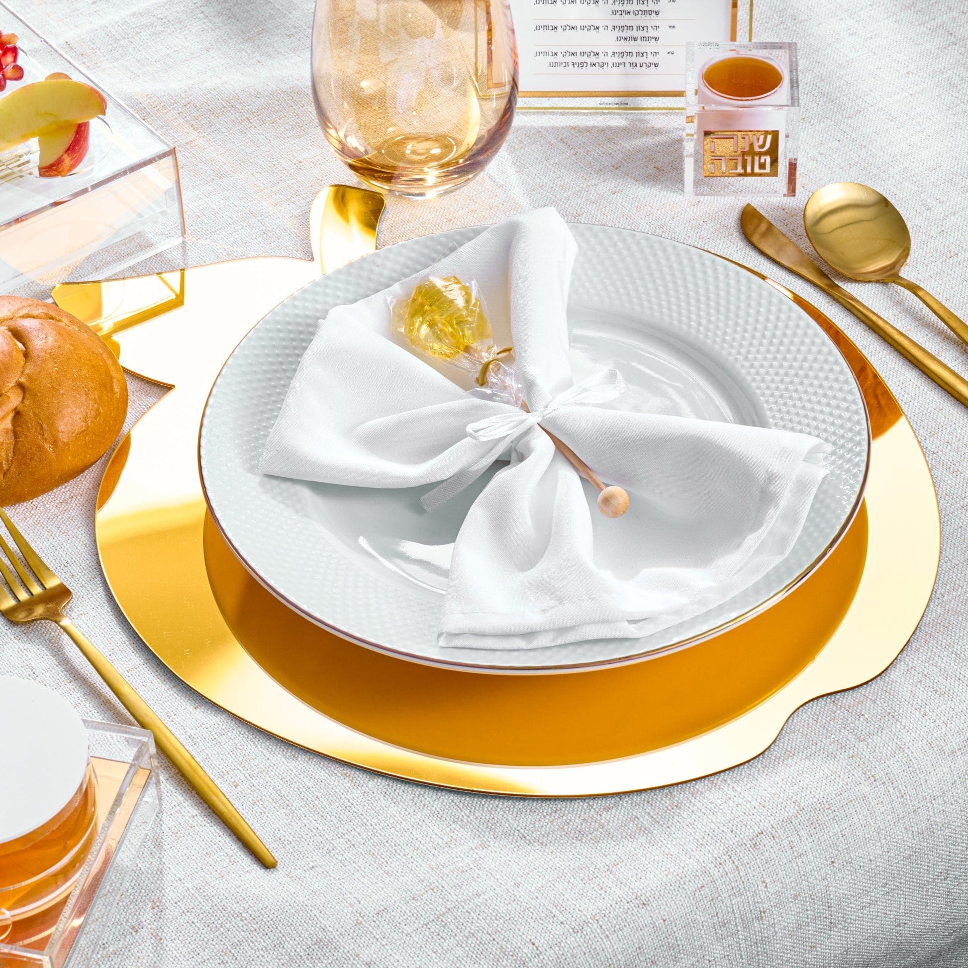 This table charger is built to frame your place setting on Shabbat and Yom Tov, with a look that stays composed even when the table is full.