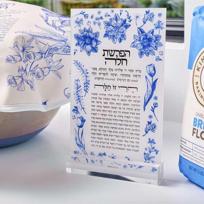 Care: Care guidance from Waterdale: Stunning glossy French Toile Lucite Hafrashas Challah Card. The perfect and practical addition to your kitchen! Easy to read. Wipe clean.