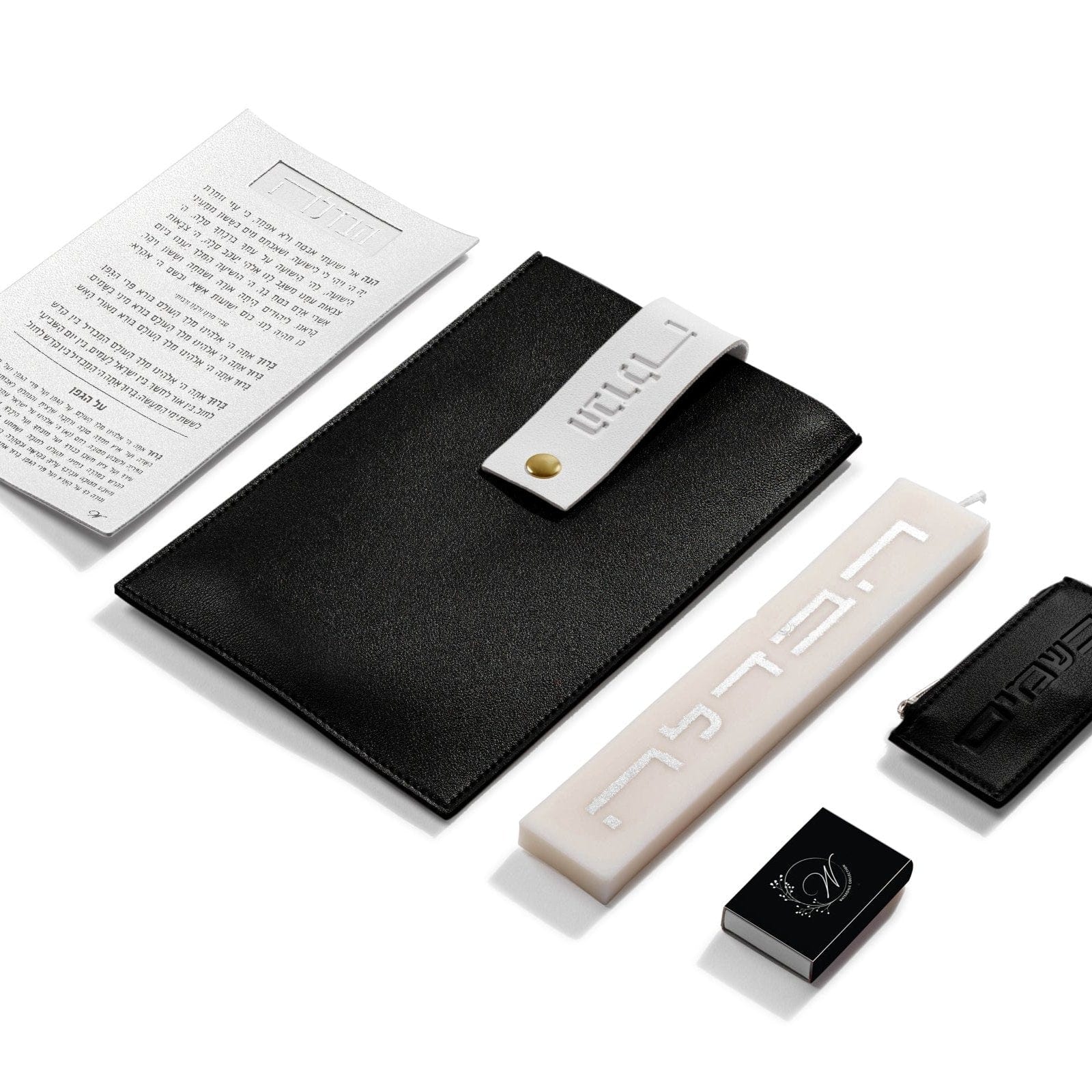 Includes: Enhance your weekly Havdalah with our Leather Havdalah Pouch. This set includes a leather card, small match box, small havdalah candle, and leather besamim case. Upgrade your Havdalah table. Made with high-quality mat...