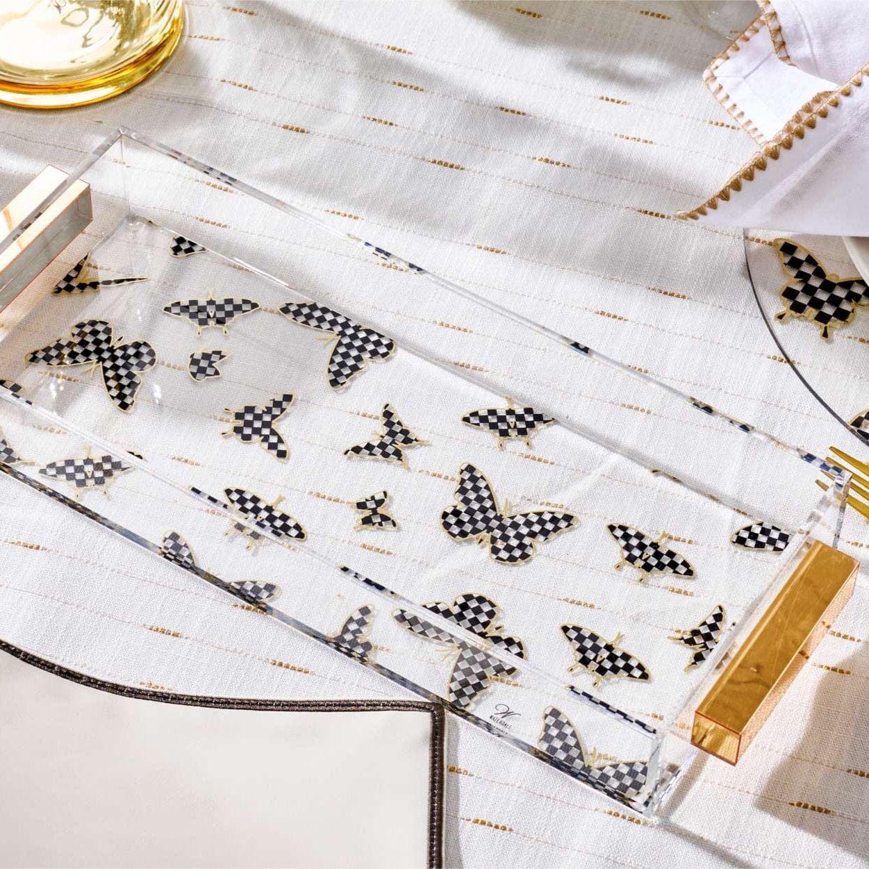 Onyx Butterfly Bread / Towel Tray is a serving and display tray made on the Shabbat and Yom Tov table, for serving and display—built around the details Waterdale provides.