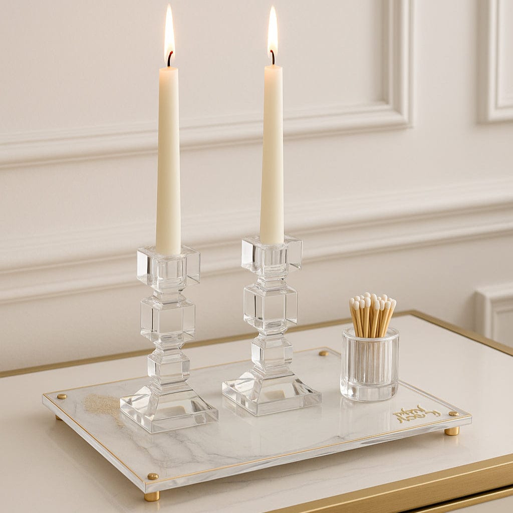 Painted by Judy Hadlokas Neiros Tray is a serving and display tray in Lucite in a listed size of 11", made to live on the Shabbat and Yom Tov table, for serving and display from Waterdale’s Painted collection.