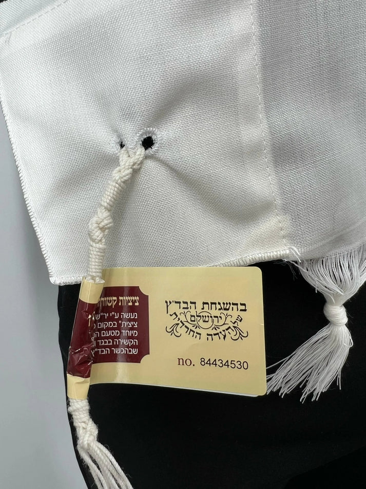White Wool Tallit Katan – Hand-Spun Strings – Badatz Eida Chareidit Certified